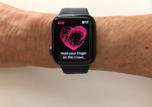 Long story short, something did… I couldn’t have the surgery until it was resolved, and that’s when my cardiologist suggested an Apple Watch! The Apple Watch 4 is nearly as effective as the implanted monitor at detecting atrial fibrillation, or A-fib. With the push of a button I can do a 30-second ECG which, if need be, I can send right to my doctor!