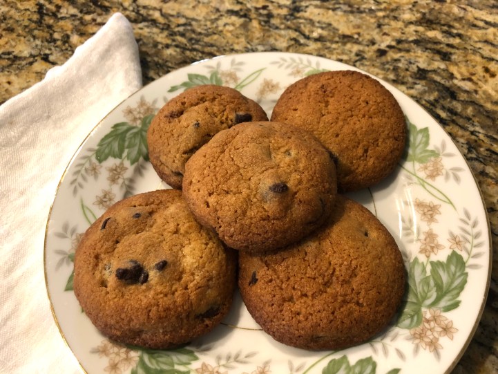 I have a friend who works on spreadsheets. My youngest sister cleans. Me, I bake. I have a batch of almond-flour chocolate-chip cookies in the oven as I write.