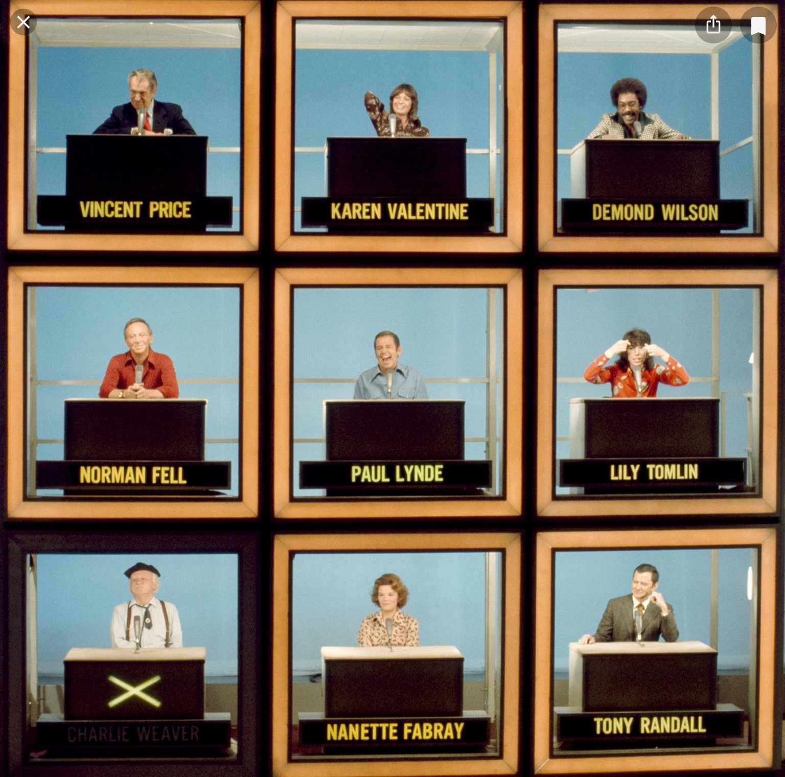 Even my group therapy session happened online yesterday. Seeing everyone’s dear faces onscreen reminded me of Hollywood Squares. Remember that old show? It was so zany and risqué for it’s time!