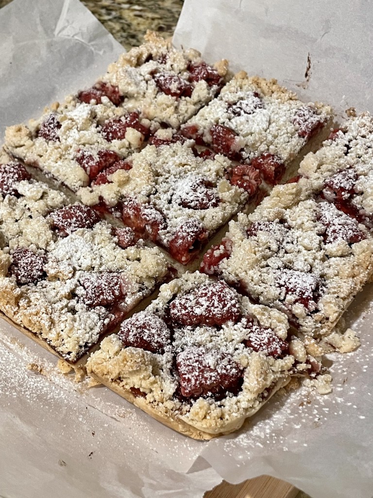 Afterward, we drove 50 miles home in rush-hour traffic, in the dark and the rain, the first we’ve had in a while. It was a spectacular electrical storm, lightning rending the sky, the white bolts temporarily turning everything violet. It was a great distraction, as were the muffins we ate as we drove. Crumbs everywhere… but that wasn’t important for a change. Crumbs can be vacuumed.
