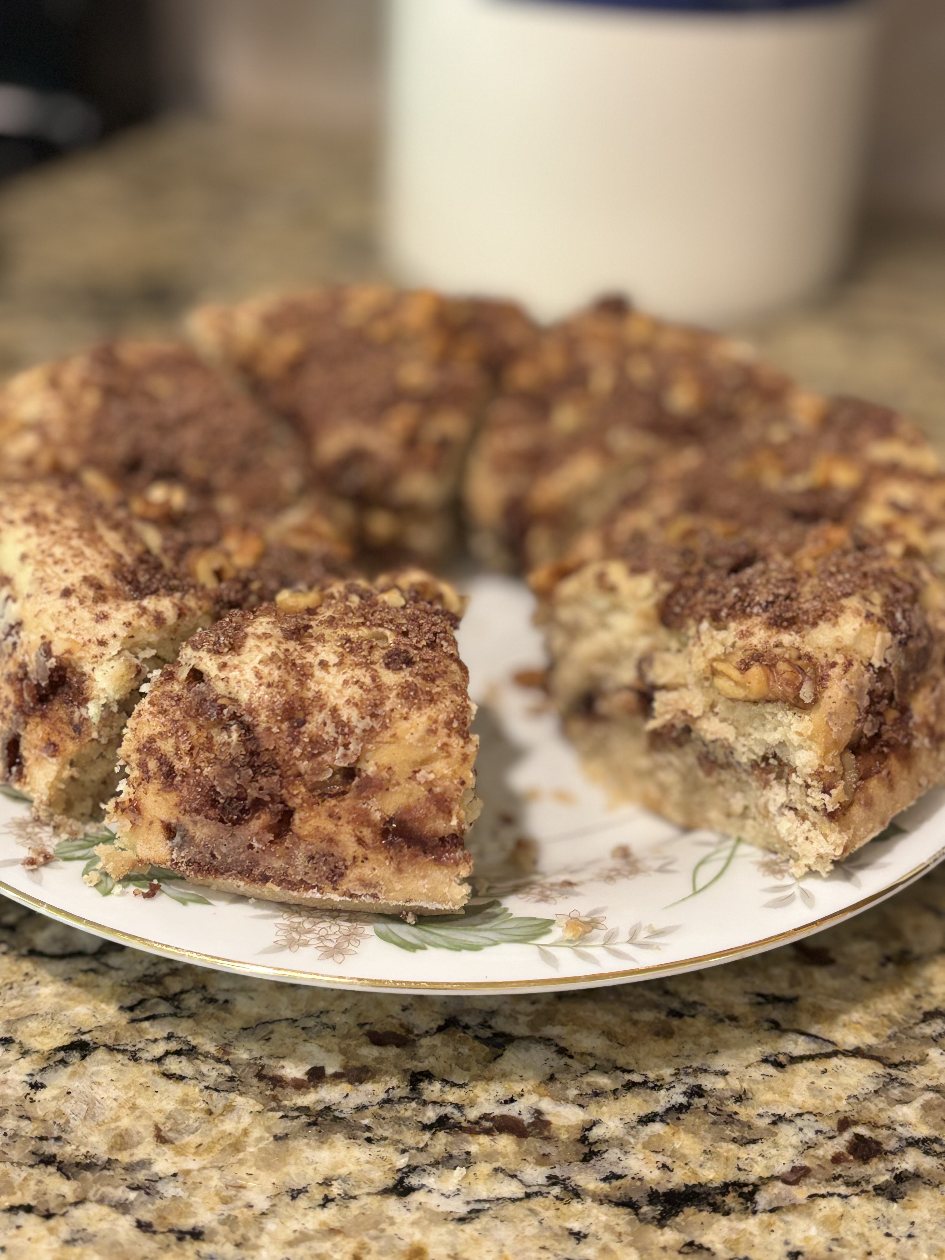 To celebrate, I baked myself a delicious gluten-free/non-dairy sour cream coffee cake. And I gotta tell you, it was delicious!